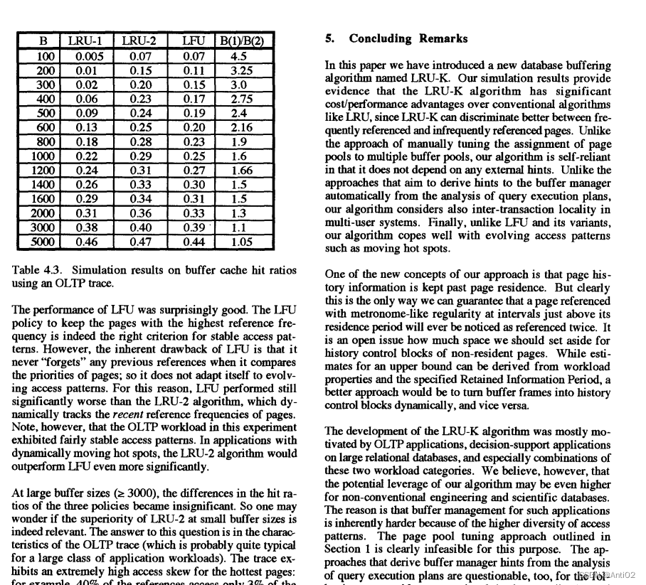 - 参考文献:The LRU-K page replacement algorithm for database disk buffering (acm.org)