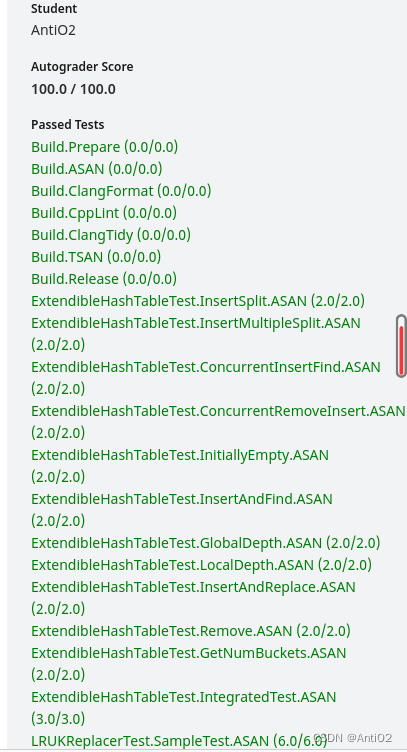 然后其他的代码实现按照题目要求做就行了,注意每次frame的变更对page_table_、replacer_的影响,遇到错误使用GDB或者通过IDE调试工具来调试找到问题。
