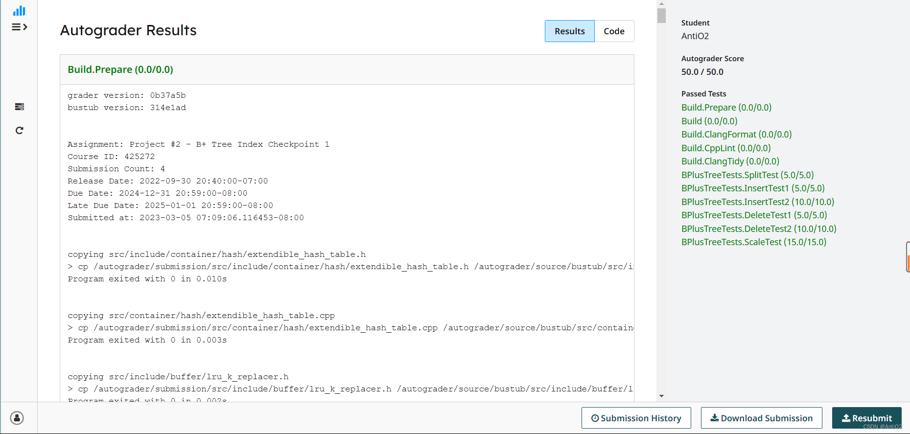 完成代码后在本地通过Insert和Delete最后一个测试点。这个任务应该是该项目中代码量最小的。