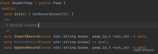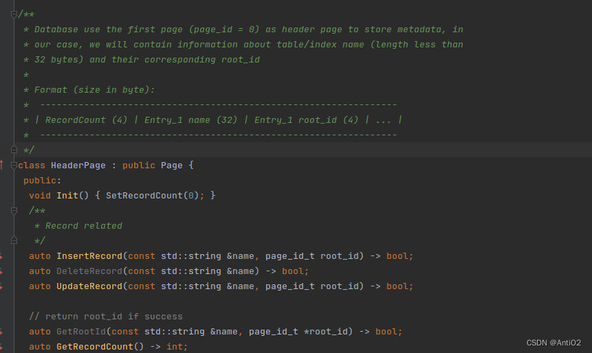 HeaderPage有三个方法,用于管理相关信息。通过auto GetRootId(const std::string &name, page_id_t *root_id) -> bool;,可以获取root_id