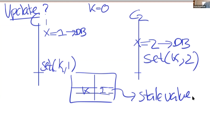 比如使用MySQL为DB。通过squeal观察LOG,哪些键被修改了.如果键k被修改,就向缓存集群发送信息:delete k.这样在客户端下次读取时,就会出现缓存不命中,然后重新缓存。